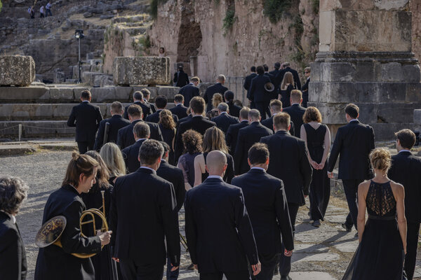 В древнем дельфийском амфитеатре, на фоне руин храма Аполлона оркестр musicAeterna под управлением Теодора Курентзиса исполняет Седьмую симфонию Людвига ван Бетховена. Хореографическая труппа Саши Вальц создаёт пластический комментарий к этой музыке и этому пространству.Бетховен завершил Седьмую симфонию в 1812 году. Ромен Роллан писал о ней: «Симфония ля мажор — само чистосердечие, вольность, мощь. Это безумное расточительство могучих, нечеловеческих сил — расточительство веселья ради». Рихард Вагнер высоко оценивал эту симфонию и назвал её «апофеозом танца». Сочетание симфонии с танцем, несомненно, было бы вполне в духе великого мастера Gesamtkunstwerk — «единения искусств».