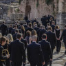 Параллели между Седьмой симфонией Бетховена и античной архитектурой в эксперименте оркестра musicAeterna и танцевальной труппы Саши Вальц.